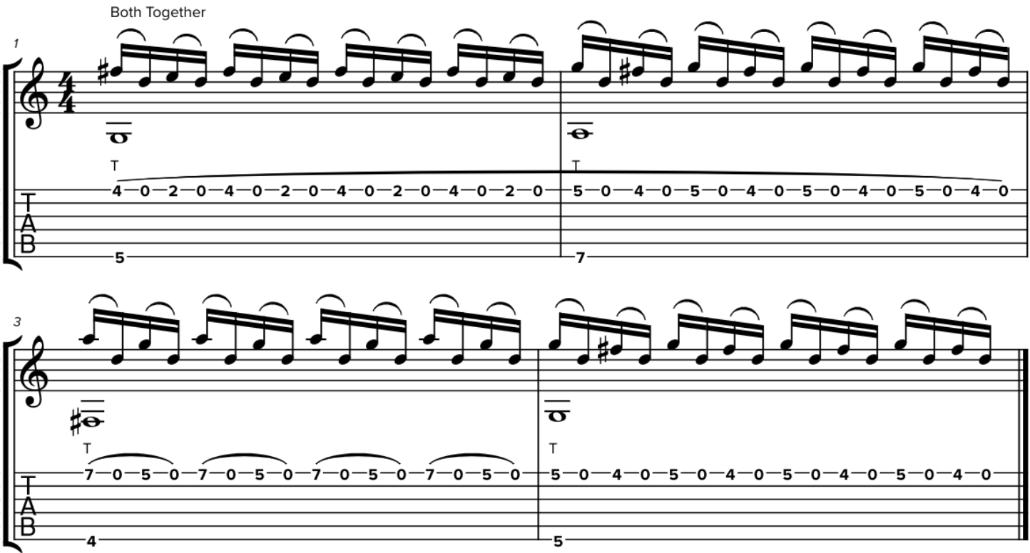 Once you’re happy with the left hand and the right hand separately it’s time to put them together! Here’s the tab: