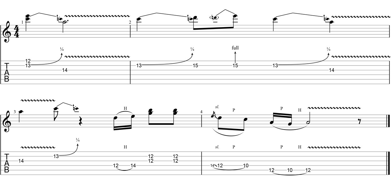 Let's get started by taking a look at the lick itself. It is based in the key of A blues and uses the A minor pentatonic shape 4, which is pictured below. The lick uses a lot of subtle bends, combined with some aggressive playing, so be sure to spend time working with every note! The tab is also below to help you work through it.