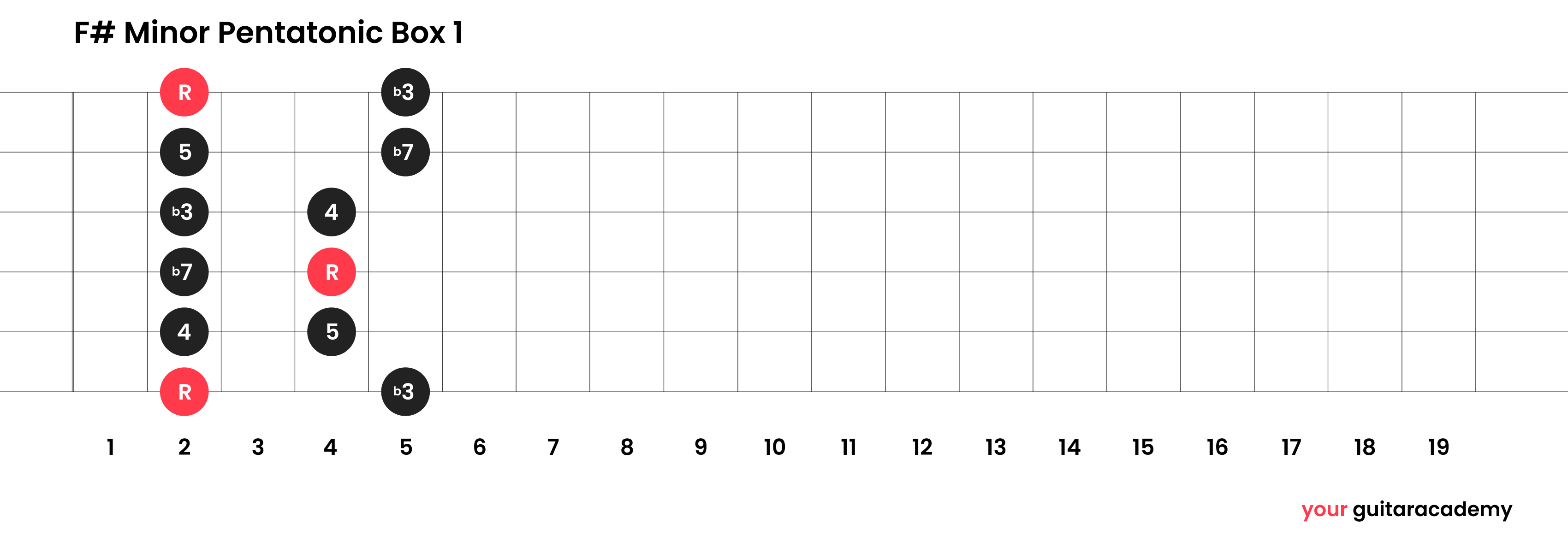 Dan once again draws on his CAGED system knowledge to inject some Hendrix-Esque lead fills over the chords. In this case, He's going for A Major Pentatonic Shape 2 over the A Major 7 Chord and F# Minor Pentatonic Shape 1 over the F# Minor 7. Check out our Jimi Hendrix Course for more on this style. For now, here are the shapes: