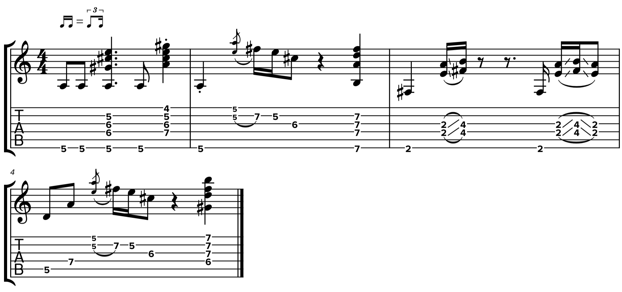 Now we've got a far more unique sounding song with some catchy fills over a really solid chord progression. Dan layers up a few more alternate voicings for the chords to give a really lush sound to finish things off. As always, Dan is using his CAGED system knowledge to play these different voicings. Here's the tab with the final parts: