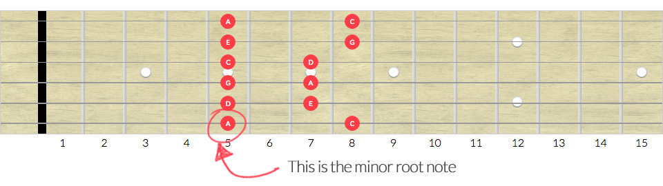 If you are looking to try and play a little lead over the top, the minor pentatonic position 1 is a great place to start! All you need to do to put this in the right key is move the root note (first note) to the key of the track on the E string. For example, if the track is in the key of C, move the shape to the 8th fret and off you go. Here are some examples: