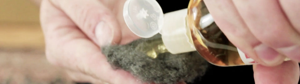 - 2. Place a small amount of wood oil soap onto the wire wool