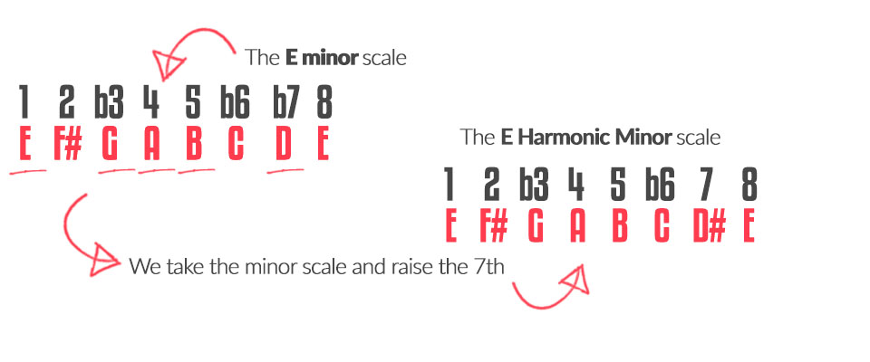 So, what is the harmonic minor scale? The harmonic scale is a widely used alternative to the natural minor scale. It is widely used because it sounds far darker than the natural minor, which is essentially just a mode of the major scale. Also, when you harmonise this scale to create a set of chords, they sound far more minor and create a clearer difference in sound between the major and minor keys. These are all topics we can explore, but for now, let's just get the theory correct. Here is how to construct a harmonic minor scale: