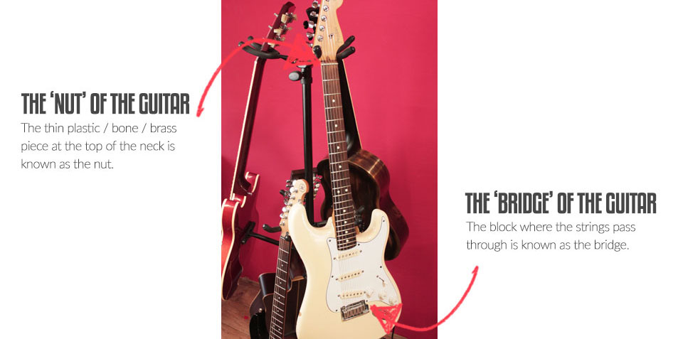 For those of you who are fairly new to any form of maintenance, some of the terms may be a little bit foreign to you at the moment. To help you follow along, here is a cool diagram detailing the key parts of the guitar for string changing.