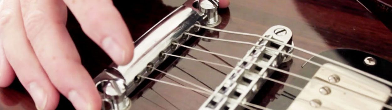 Another thing to bear in mind is that this guitar has a different bridge to the previous one we looked at. This is a Tune-o-matic style bridge, a type of 'hard-tail' or 'fixed' bridge commonly found on Gibson style guitars. Another guitar that commonly has a fixed bridge is the Telecaster (although not usually a Tune-o-matic!). The other main type is a 'Tremolo' style bridge, commonly found on Stratocasters. Make sure you have identified which type of bridge you have (bearing in mind these are the main 2 types and there are a lot of others out there!):